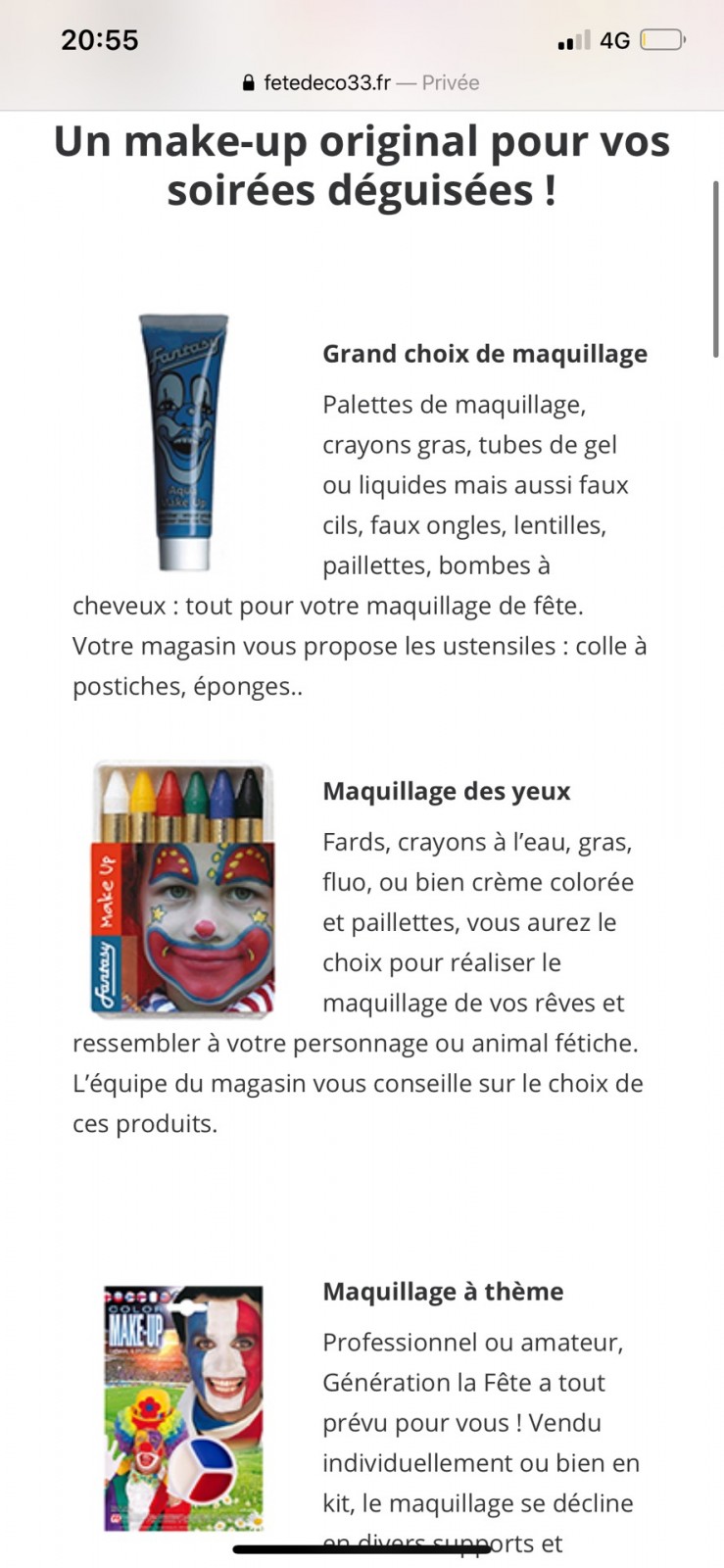 Si vous souhaitez maquis et votre enfant, tout simplement que vous avez une peau sensible, venez nous rencontrer à déco est faite avenue Gustave Eiffel à Pessac, nous vous proposons un large choix de maquillage de fête hypoallergénique à Bordeaux, le but d’une soirée déguisée n’est pas de ressortir avec la peau irritée toute rouge ou allergique.