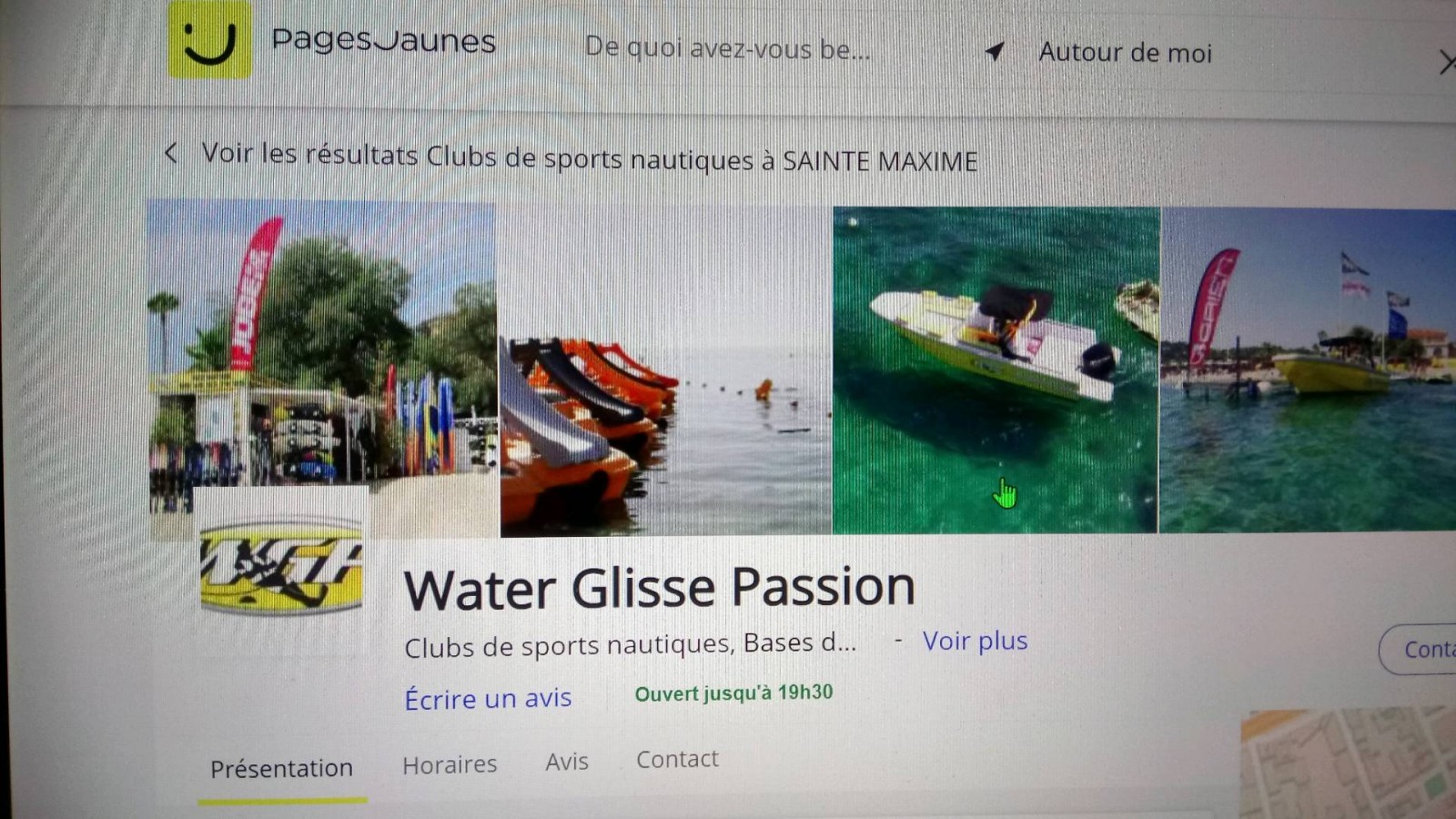 vous pouvez téléphoner à water glisse passion au 06 58 03 26 05 ils sont situés sur la plage de la nartelle 61 avenue général-touzet-du-vigier 83120 Sainte-Maxime