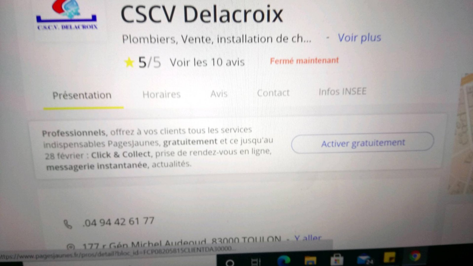Vous vous avez envie de prévoir l'installation d'une climatisation pour l'été prochain car les étés se font de plus en plus chaud et vous avez besoin de rafraîchir les pièces de votre maison vous souhaitez faire appel à une société professionnel qui va pouvoir vous donner des conseils en matière de climatisation réversible et qui va pouvoir également vous établir un devis sur les différentes partie qui concerne les plomberie et électricité de votre maison vous souhaitez faire appel donc à la société CSCV Delacroix qui est spécialisée dans les travaux de plomberie et installation de chauffage il se trouve 177 rue Michel audéoud 83000 Toulon vous pouvez les contacter au 04 94 42 61 77