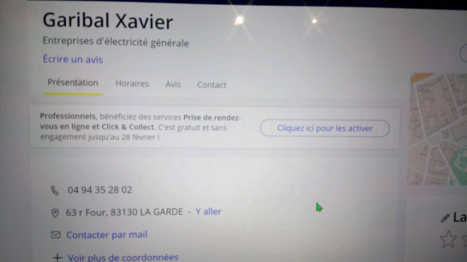 vous pouvez contacter la société de Monsieur Garibal Xavier qui est situé au 63 rue four 83130 la garde vous pouvez le contacter par téléphone au 04 94 35 28 02