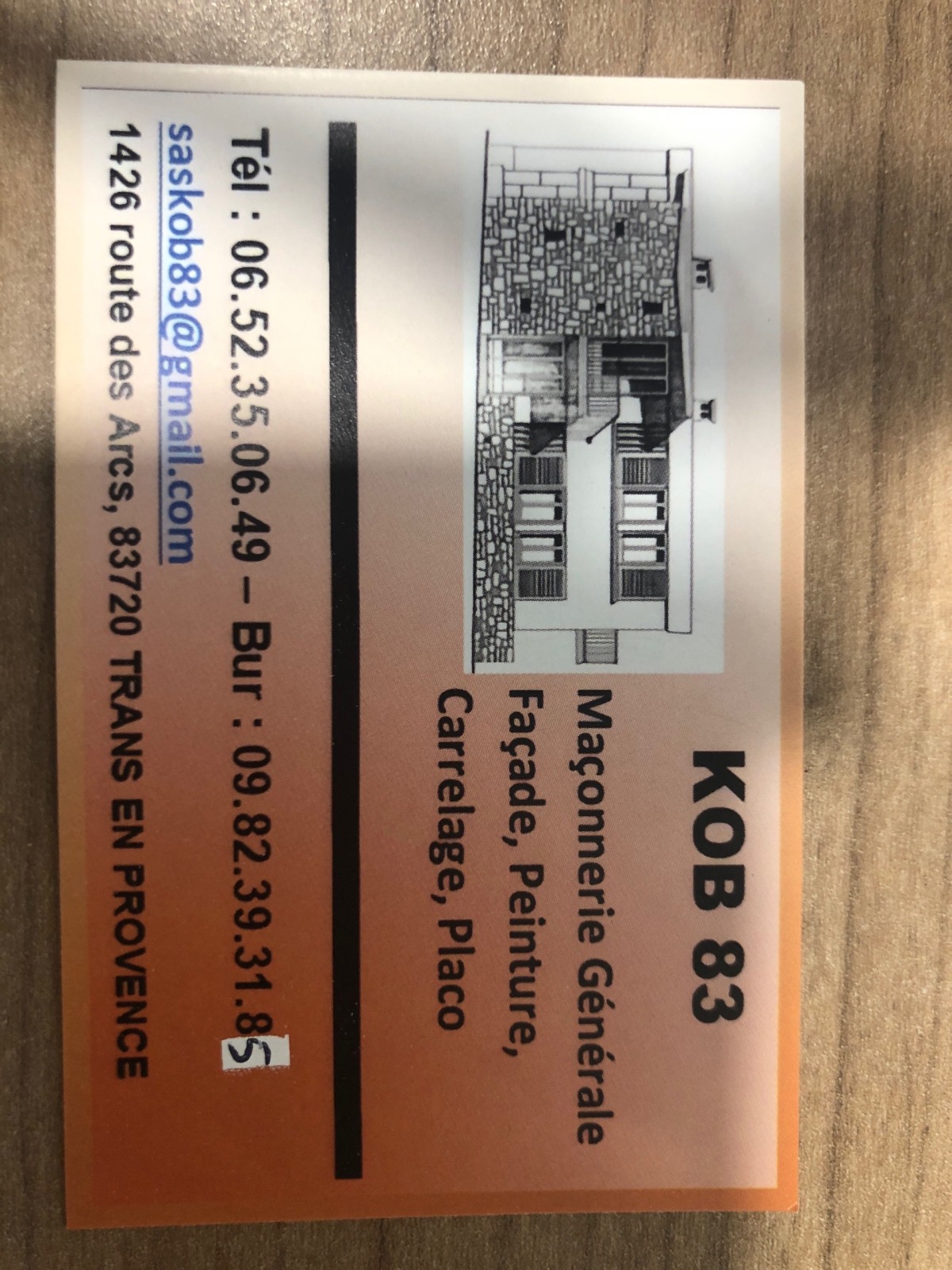 Vous êtes à la recherche d’un artisan spécialisé dans la rénovation immobilière dans la région de Draguignan? Contacter la société KOB 83 situé dans la commune de trans en Provence à côté de Draguignan. La société KOB 83 est spécialisée dans la rénovation intérieure et extérieure, la charpente, le carrelage, la mosaique, les façades, la peinture etc. Pour toutes vos demandes d’informations merci de contacter la société KOB 83 aux 06 32 43 47 22 nous nous déplacerons dans un secteur de 30 km aux alentours de Draguignan pour effectuer vos devis gratuitement ! A tres bientot dans nos bureaux