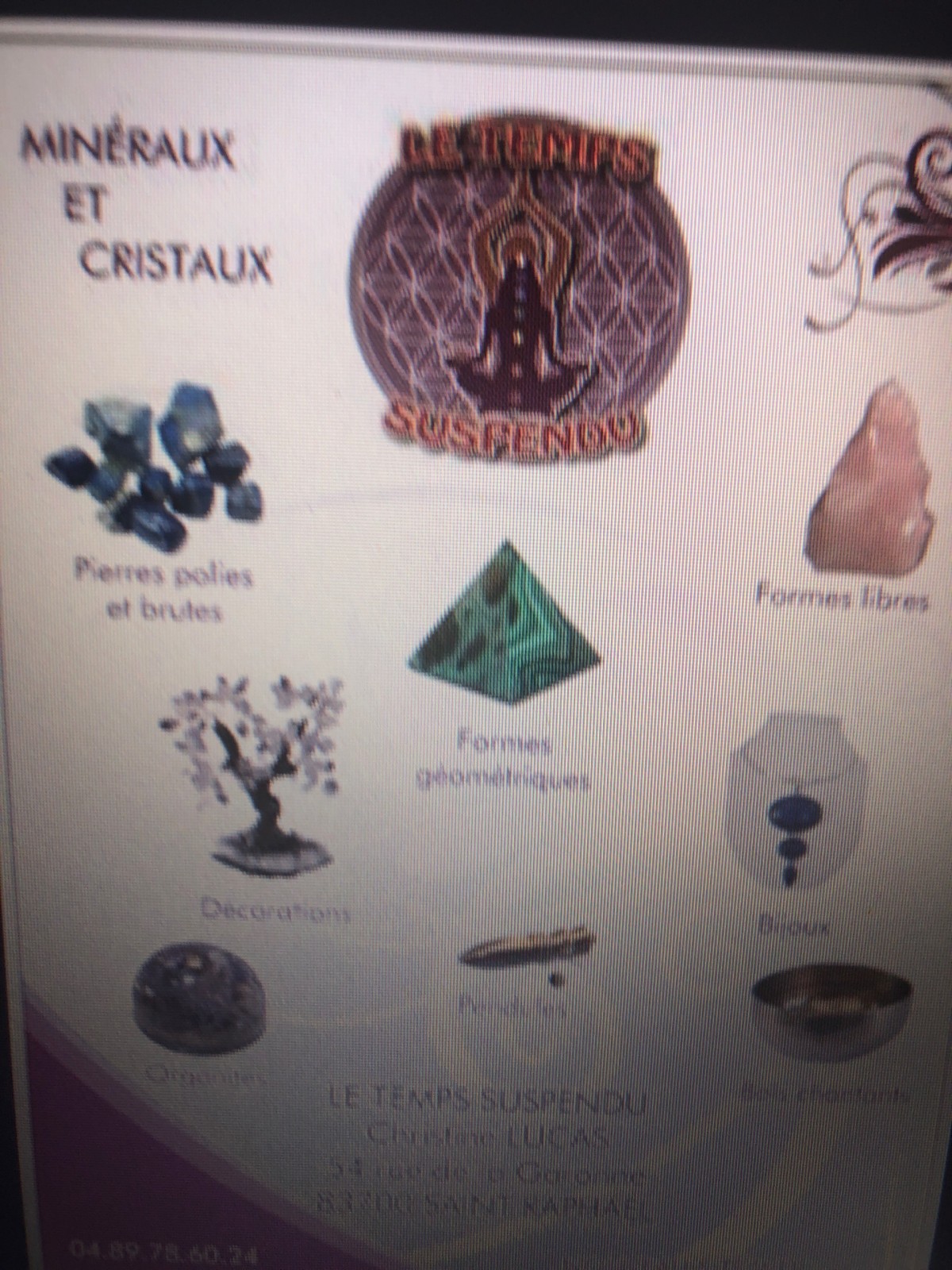 Vous recherchez un magasin spécialisé dans la lithothérapie à Saint-Raphaël dans le Var ? La boutique au Temps Suspendu est située au 54, rue de la Garonne à Saint-Raphaël 83700. Le Temps Suspendu est une boutique qui vous propose des minéraux, des lampes de sel, des bijoux en pierre, des pendules, et Christine se fera un plaisir de vous conseiller sur l’achat de vos minéraux en fonction de vos maux et de vos besoins. Pour toutes demandes contactez Christine à la boutique Le Temps Suspendu à St Raphael aux 04 89 78 60 24 Du mardi au samedi de 9h30 à 18h.