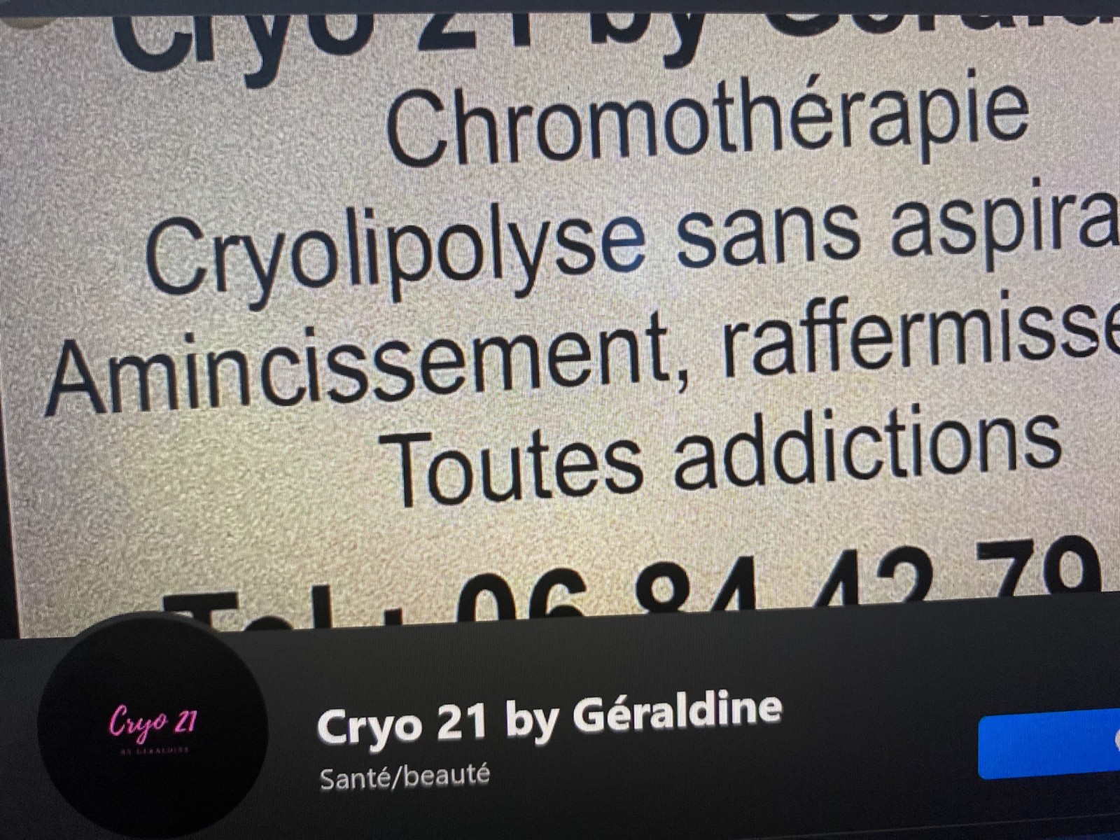 Cryo 21 by Geraldine vous propose ses services de cryothérapie sans aspiration, de chromotherapie, de cryolipolyse. Nous vous accompagnons, nous assurons votre suivi, nous vous conseillons au plus proche de vos attentes afin de vous satisfaire. Nous saurons également vous accompagner pour traiter tout type d’addiction.