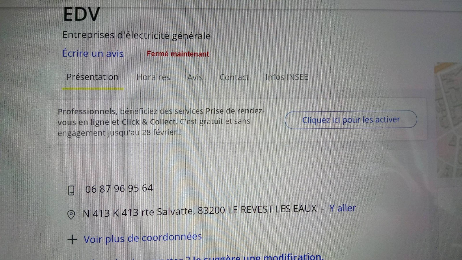 contacter la société EDV entreprise d'électricité générale situé à la nationale 413 route salvatte 83200 le Revest-les-Eaux