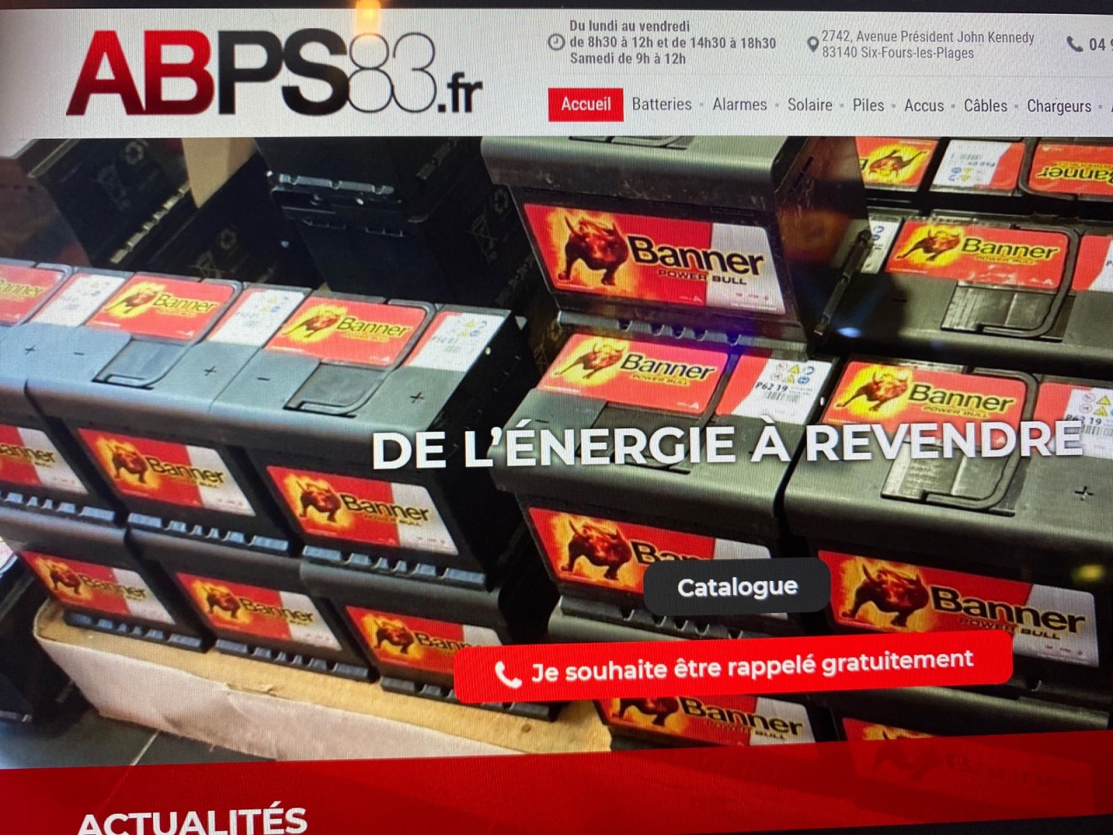 La société ABPS 83 vous propose un large choix de batteries en tout genre. Nous pouvons vous proposer près de 1200 références de piles et batteries en tout genre pour voitures et autres types de véhicules : voiture sans permis, bateaux, tracteurs, motos,... nous avons également des batteries pour alarmes, batteries solaires, accumulateurs, câbles et autres chargeurs. Venez donc à notre rencontre dans notre magasin avenue président john kennedy à six fours les plages ou pour des renseignements au téléphone au 0494242377