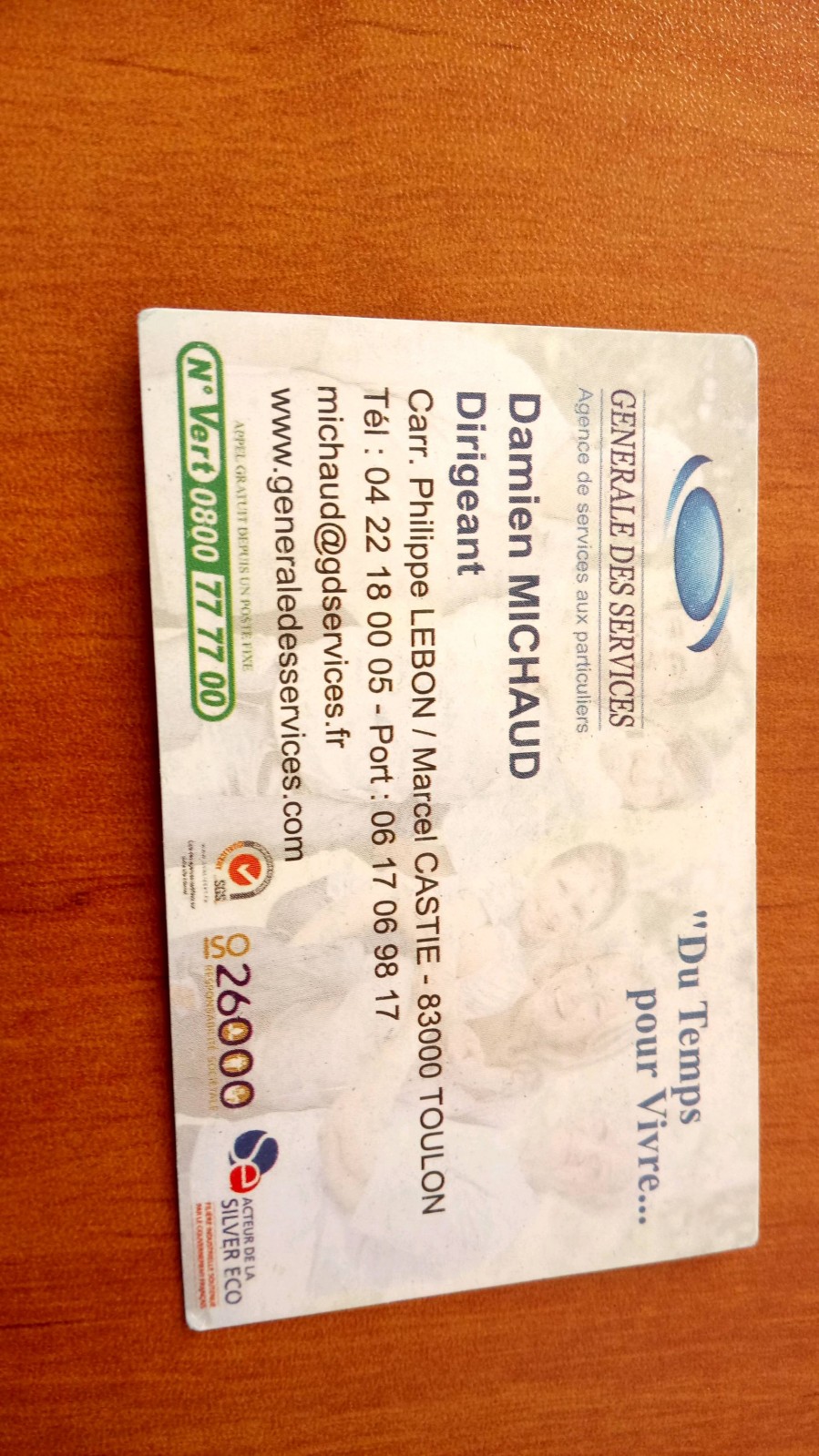 vous pouvez donc contacter la générale des services qui est situé au carrefour Philippe-Lebon Marcel castié à Toulon c'est une entreprise spécialisée dans tous les services à la personne nous pourrons vous proposer à la fois des prestations de jardinage de bricolage mais pour moi également vous proposer de vous emmener où vous souhaitez